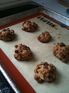 -Raisin cookies! In my mostly-fruitless search for some genuine no-sugar dessert recipes online, I found this recipe for cookies made with raisins and apples. You have to work a little harder than with most cookie recipes- the fruit gets cooked before being added to the dry ingredients, and the mixed batter must then chill in the fridge overnight… but it really does result in a cookie! Without sugar! Okay, this might be the banana pudding effect at work again; I probably wouldn’t try to stack these up against Nestle Tollhouse or anything, but for a no-sugar dessert these are sweet and chewy and definitely cookies. I wasn’t sure how I’d make a whole year without cookies!