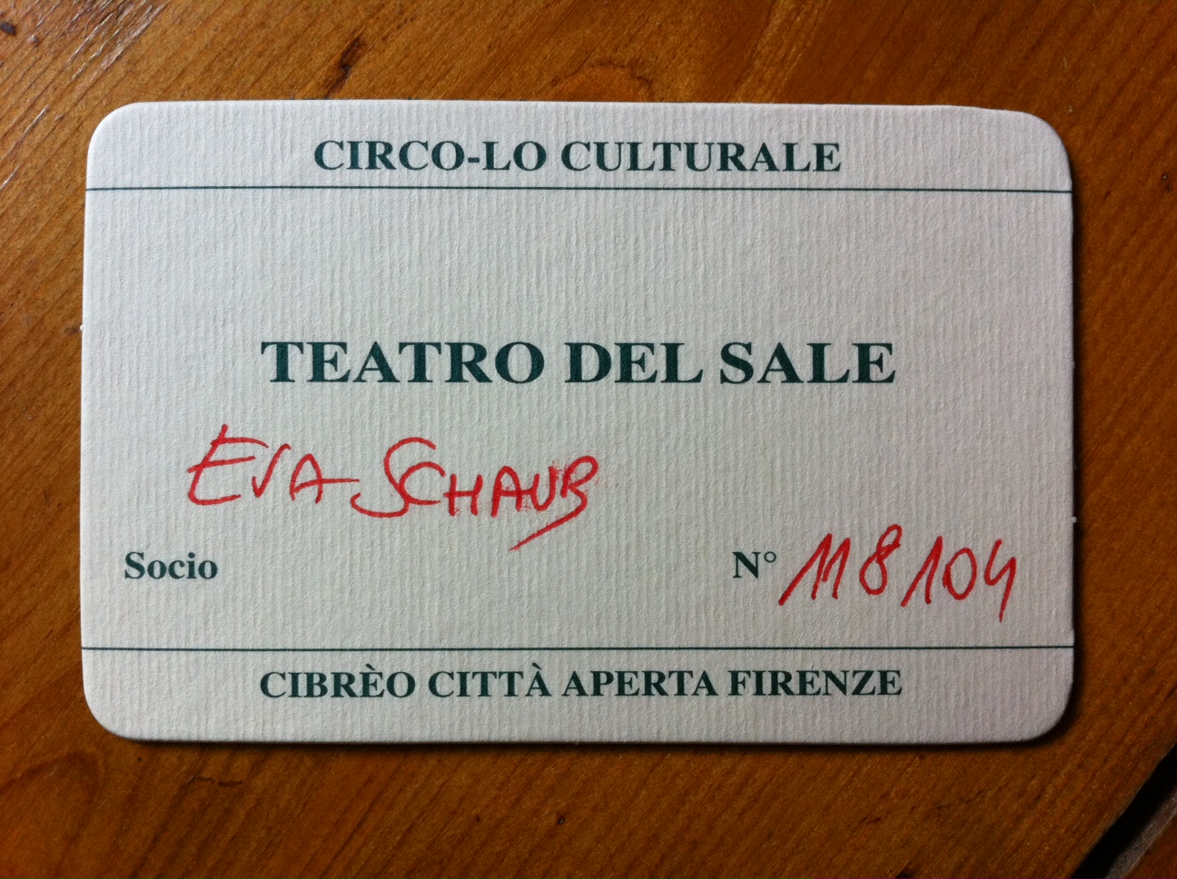 We arrived at 7:30 on the dot, dressed up and out of breath from hurriedly walking several blocks in an unfamiliar part of town- off the beaten path of the historic “centro.” After some confusion I ascertained in my mish-mosh Italian that we each had to fill out forms- the kids too- and pay a small fee to “join” the “cultural circle.” Once this was accomplished, we were given gorgeous membership cards that put my Vermont driver’s license to shame and we stumbled inside, where we could now pay for our evening’s attendance at… whatever this was.