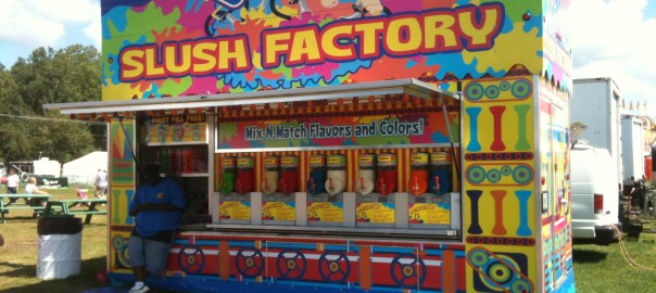 My kids were anxious to get to the rides, and were impatient with me stopping every thirty seconds or so to take pictures of the gastronomical Sodom and Gomorrah. I couldn’t help it- what has happened? I wondered wide-eyed, what have we come to? In his interview with Nightline, Dr. Robert Lustig compared our modern food court to an opium den; here at the carnival this unsettling image of debauchery and debilitation seemed entirely too appropriate.