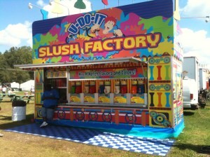 You know where I’m going with this. As we made our way further and further from the animals and closer and closer to the midway, we encountered an astounding array of junk for our perusal: buckets of fries! Giant bags of Kettle Korn! Slushies that glow in the dark! Sodas too large to carry!