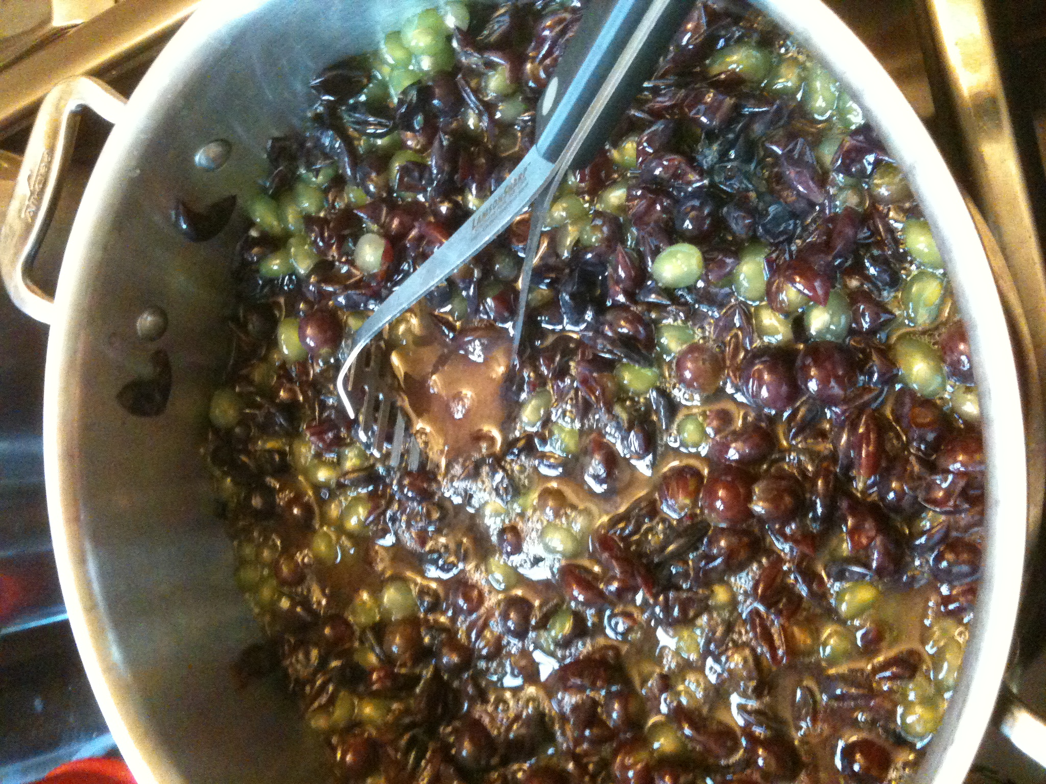 The sad news is that my jelly didn’t set. We proceeded to do what jelly and jam makers have done with failed jelly and jam since time immemorial: we had a lovely sauce. The kids liked it on crackers and on toast. It was sweet…ish. Unlike any jelly I’d had or made before, it truly tasted of the unalloyed grapes. Now, if only the set could be improved…