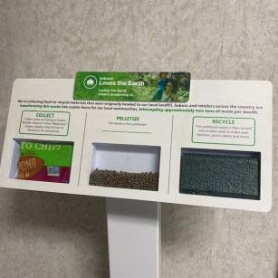 Here’s how it works: in their customer waiting area, participating Subaru dealers feature three tall, collection boxes: disposable cups, lids and straws go in Box 1, candy chip and snack wrappers go in Box 2, and coffee and creamer capsules go in Box 3. There’s also a display illustrating what happens to these items in the recycling process.
