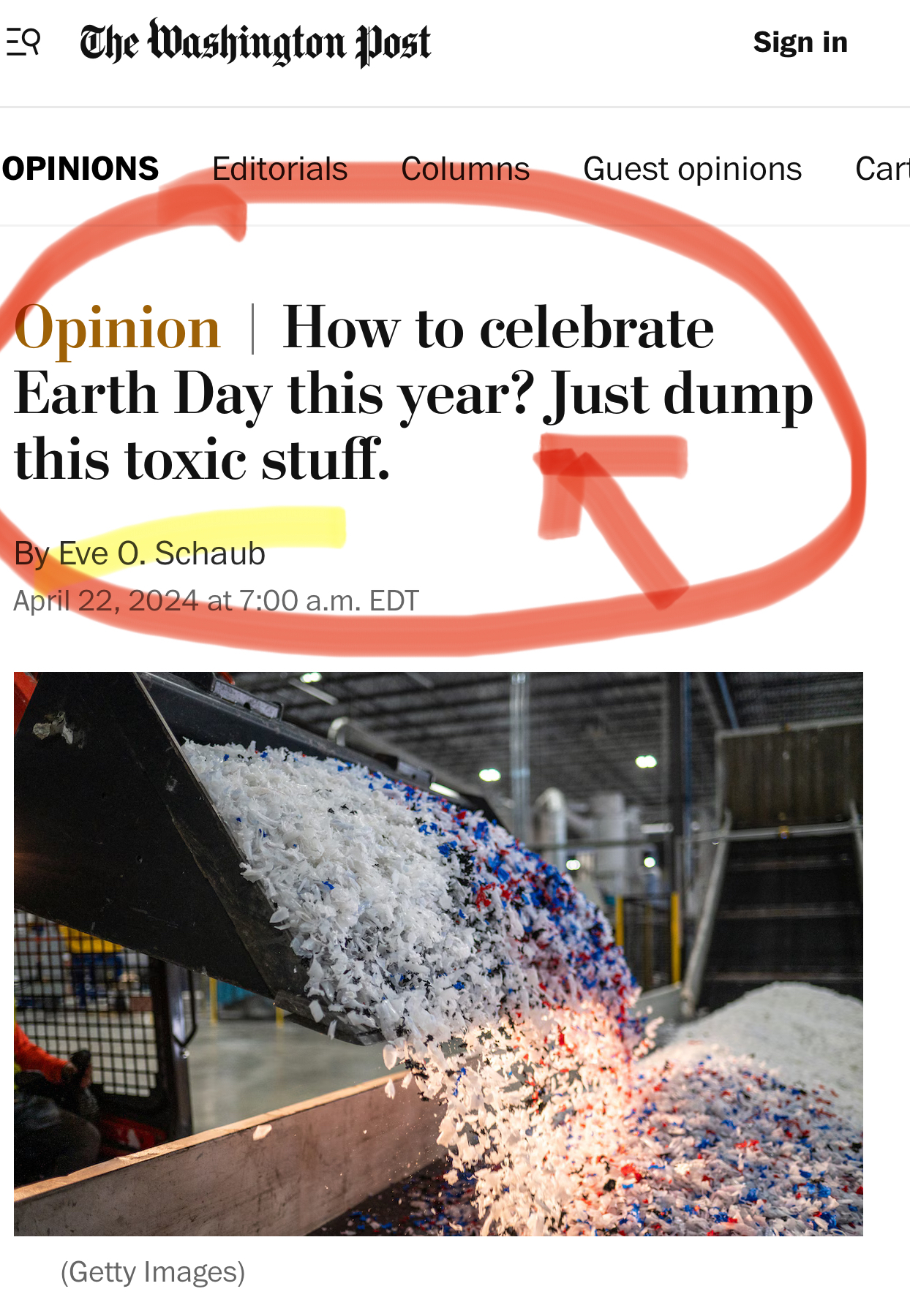 One way I’m celebrating Earth Day is by telling everyone to stop recycling plastic. I hope you’ll take a minute to read my Op Ed that appeared today in the Washington Post.