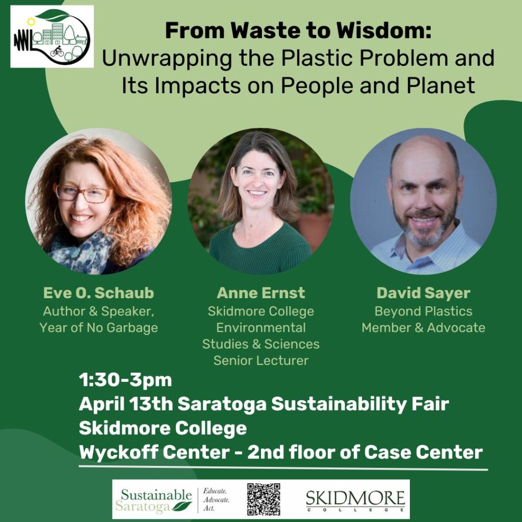 Earth Month is heating up people! Come SOLVE the Plastic Waste Crisis TOMMORROW at the Saratoga Sustainability Fair at 1:30PM this fabulous panel will be Talking Trash and I am honored to be a part of it.