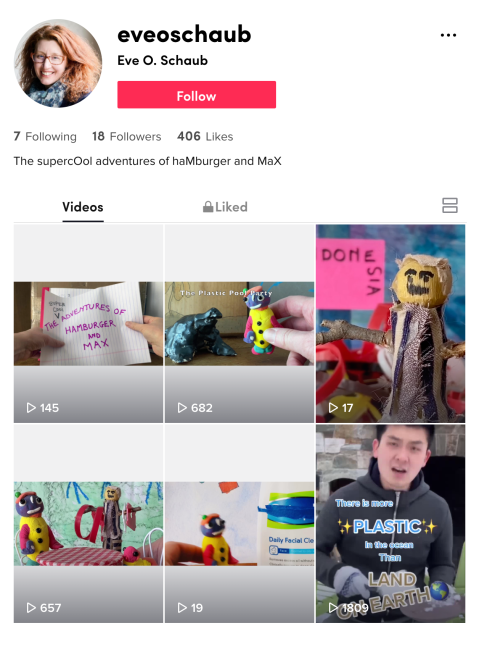 If you, or some ridiculously young person you know, are on TikTok please check out my account @eveoschaub where you can meet Hamburger and Max, two super awesome puppets who just want to do good things for the environment.