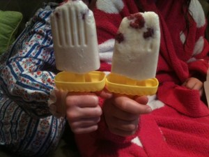 But here’s the kicker: the other night I tried one and- don’t tell the kids, but- I’m not as impressed as they are. They’re good, but… very icy. Like sucking on a milk icicle. And not… forgive me… sweet enough. Gasp!