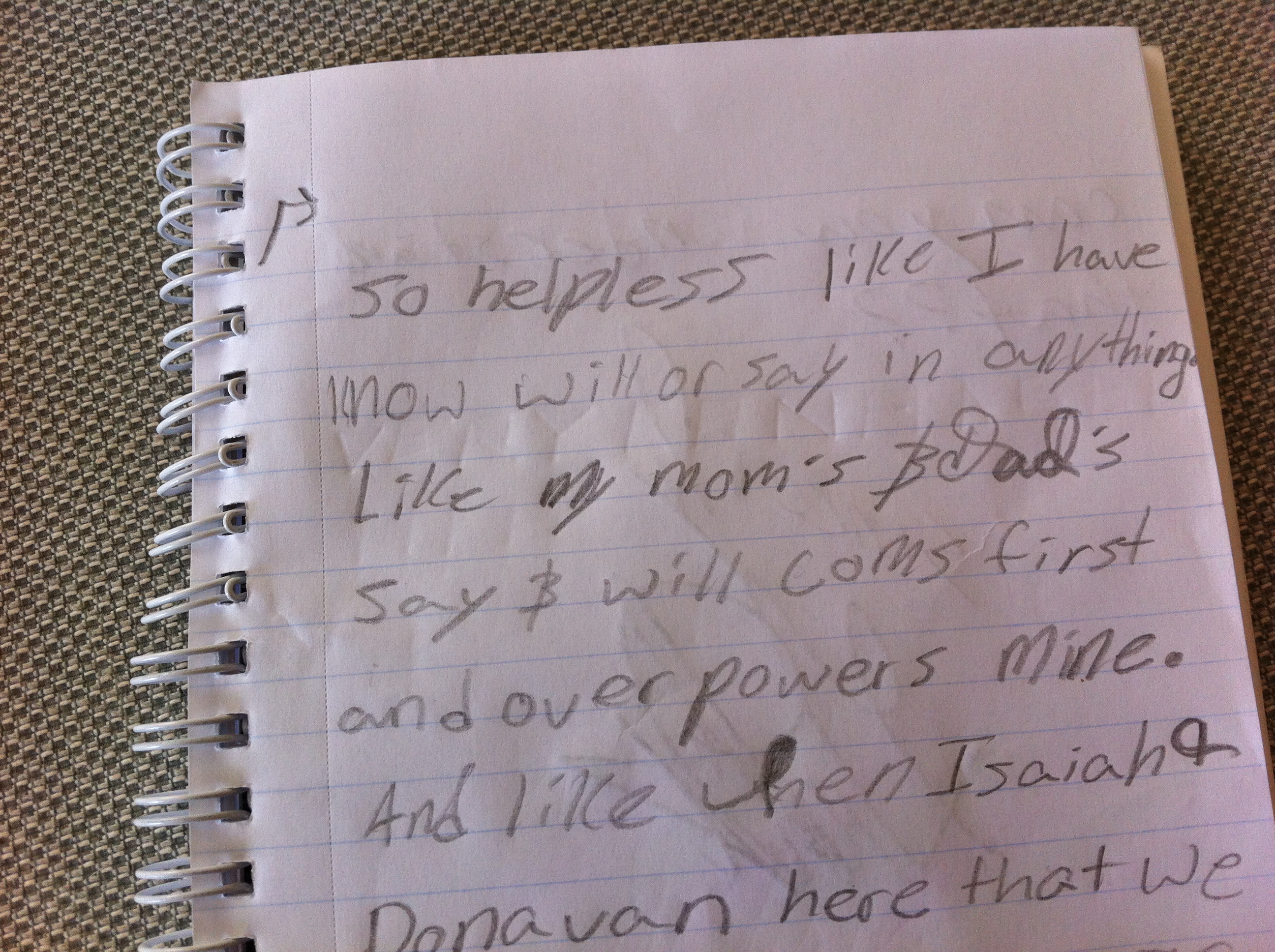 “Oh help me… I feel so helpless like I have know will or say in anything,” she wrote in her journal tonight. “Like my mom’s & Dad’s say & will com(e)s first and overpowers mine.”
