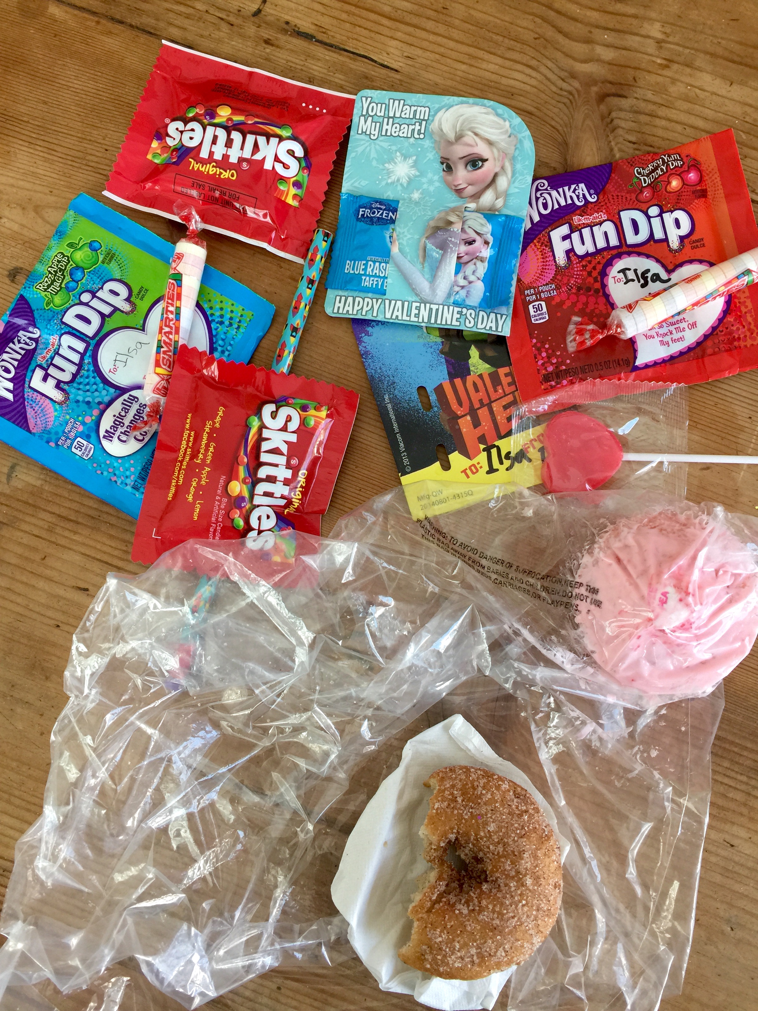 Here’s the funny thing though: they stay in her pocket. And just in case you think I’m suffering from an acute case of Mom Deluding Herself Bigtime, here’s another interesting fact: all that candy masquerading as Valentines that the kids exchanged in school two weeks ago? Ilsa’s not inconsiderable portion thereof is still sitting in our kitchen cupboard, untouched. It’s in good company, because it sits on top of the candy she’s received at various birthday parties and Christmas. At the very bottom of the pile is her large sack of Halloween candy: also largely untouched. This is, mind you, on the very bottom shelf of the cupboard, well within my kids’ reach.